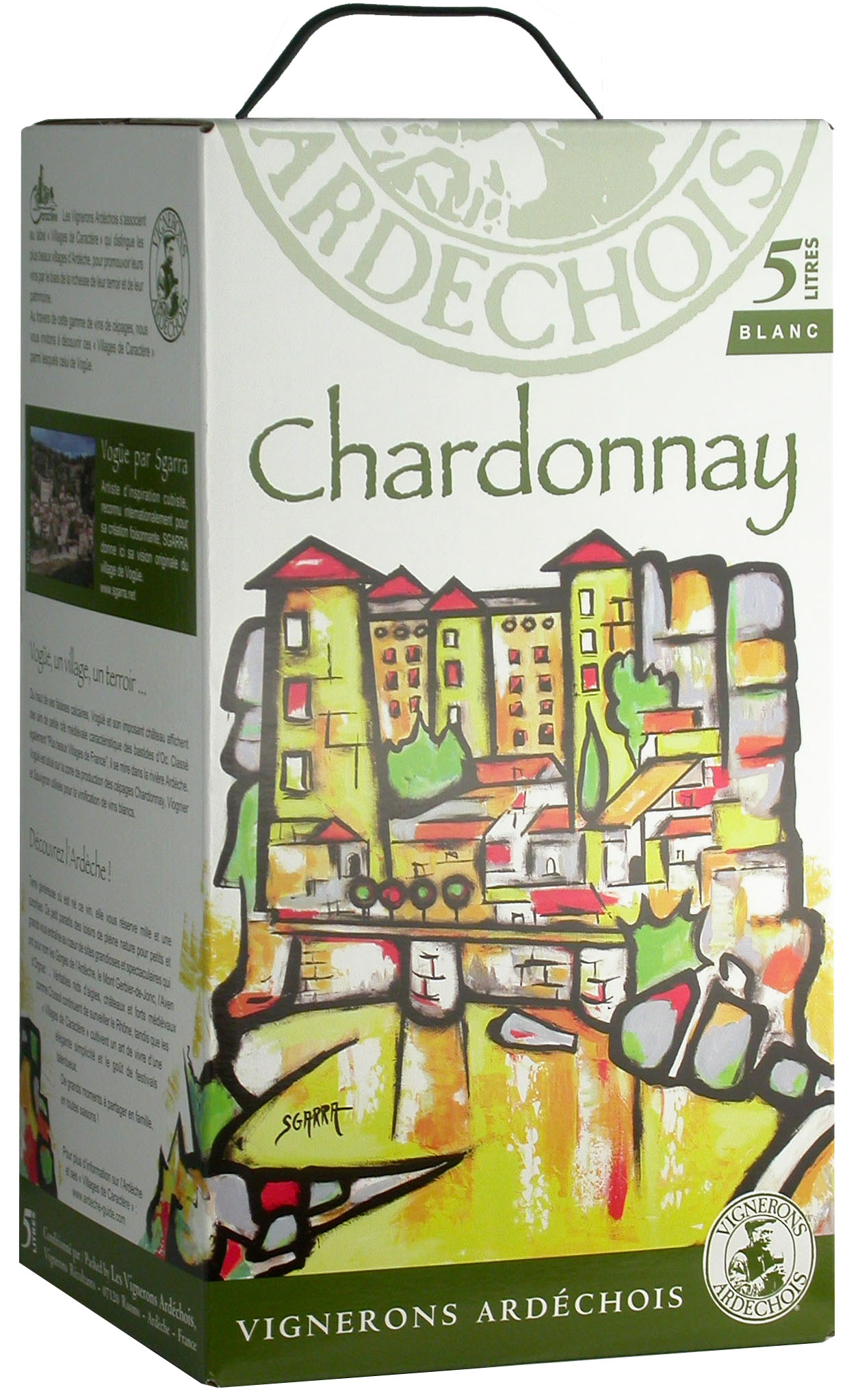 Le village de Vogüé vient illustrer ce vin, dessiné par Sgarra, artiste d'inspiration cubiste.